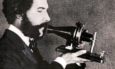 14. februar 1876 leverte både advokaten til den amerikanske oppfinneren Elisha Grey og advokaten til rivalen Alexander Graham Bell søknad om patent på telefonen, til patentkontoret i USA. Det har vært omdiskutert hvem som var først ute med oppfinnelsen, men etter flere runder fikk Bell tilsagn på sin søknad mars samme år. Wikipedia.